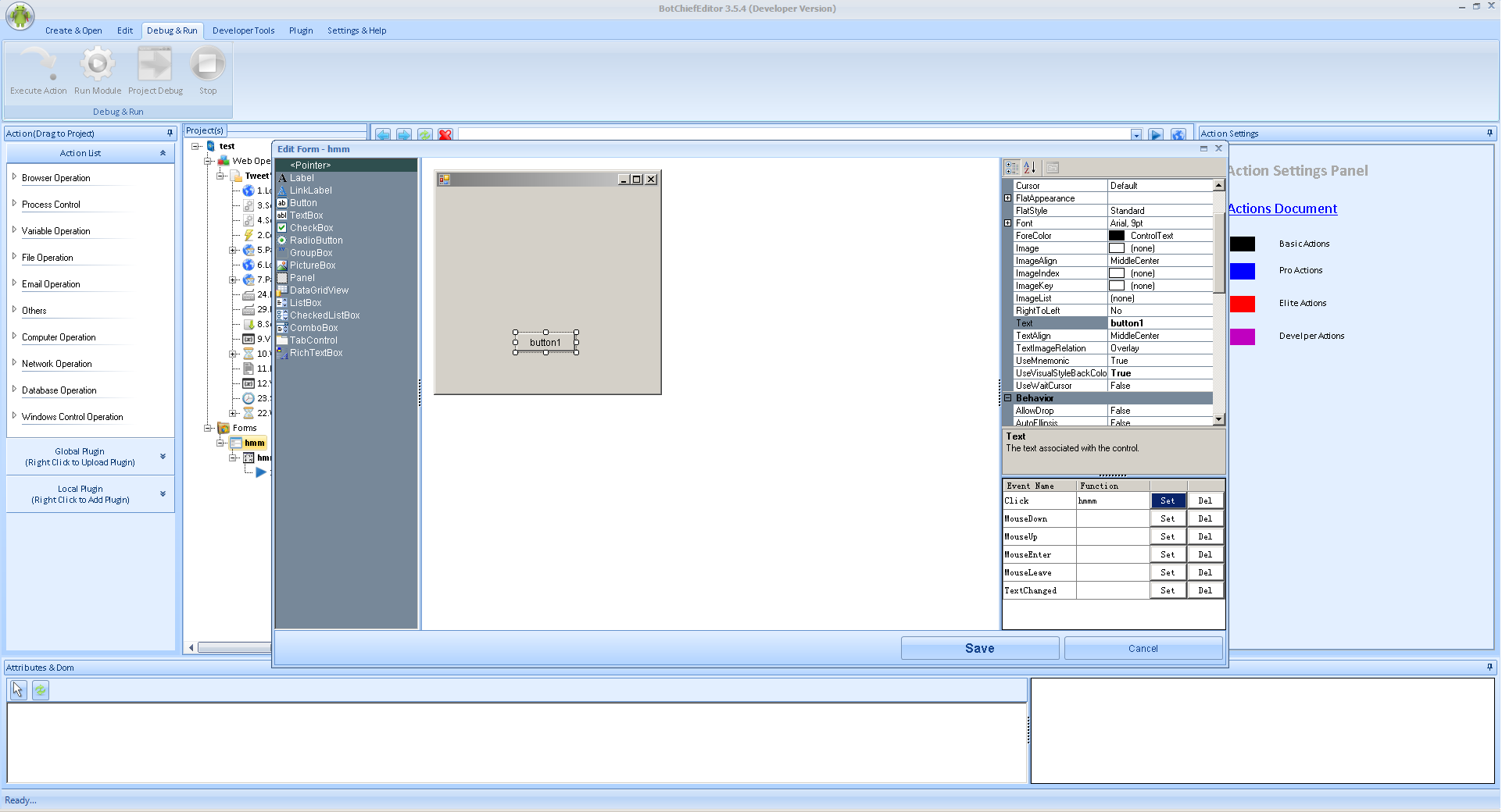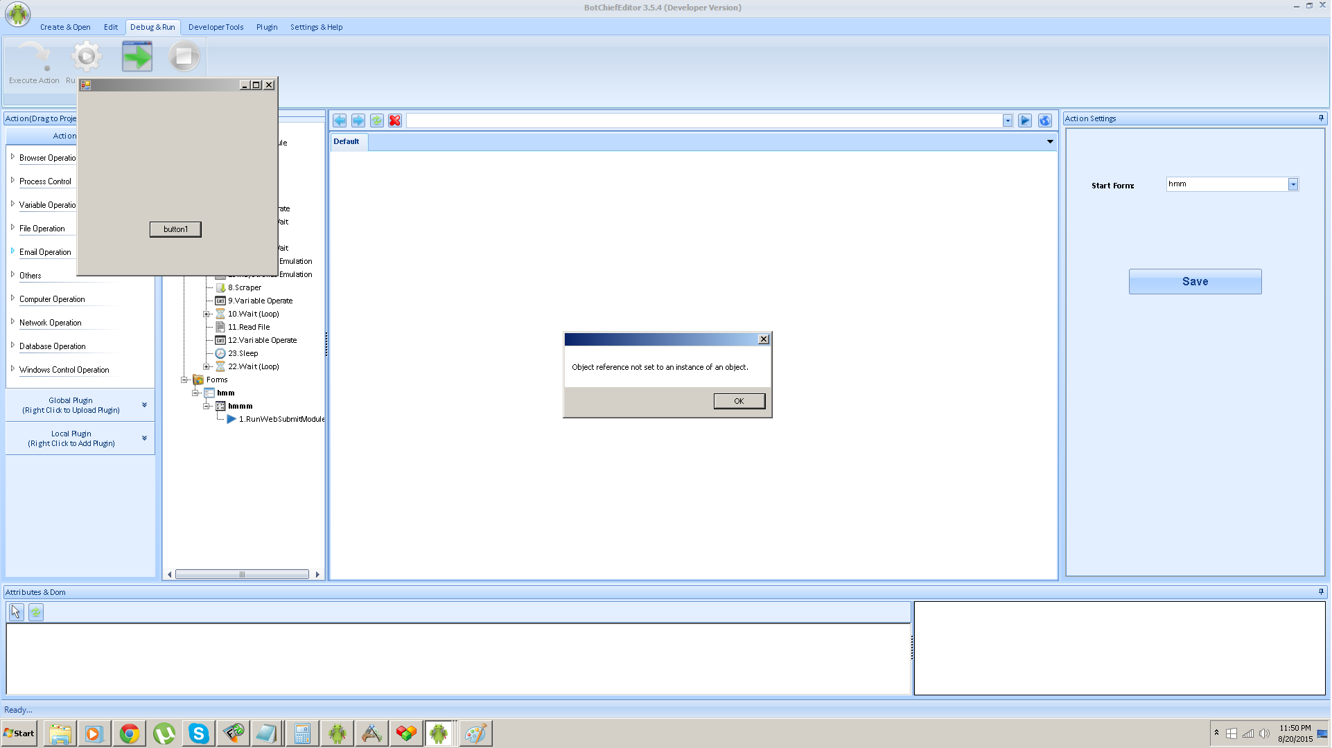 When I link a button and try to debug the form with a module I get "Object refference not set to an instance of an object" how do i fix this? I cannot seem to find any documentation so I have to ask here (: