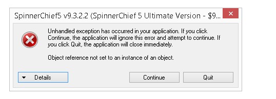 Hello, my spinnerchief crashing everytime i go for super spin and selecting any checkboxes, after click to start it always crashes